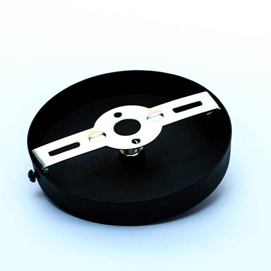 Soporte de techo fabricado en aluminio, utilizado comúnmente en la instalación de lamparas rieles y spot.
